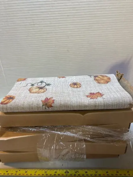 four boxes of Thanksgiving table runners