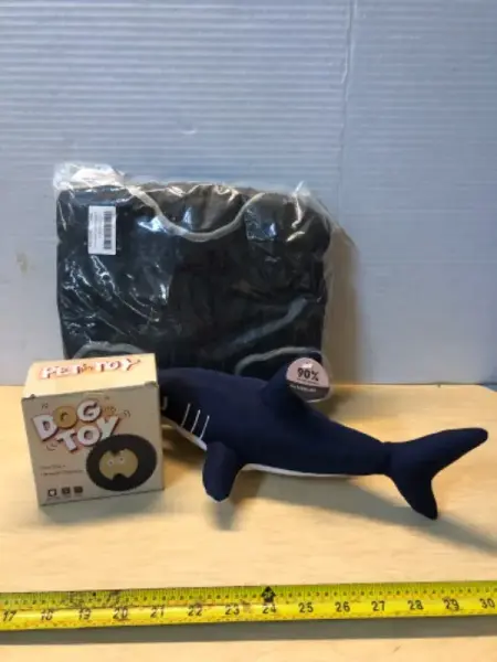 2 dog toys and a 3XL dog vest