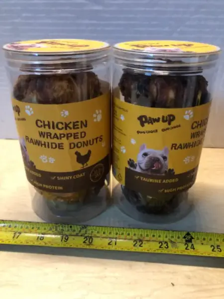 2 tubs 12.5oz each chicken wrapped rawhide donuts exp:4/17/27
