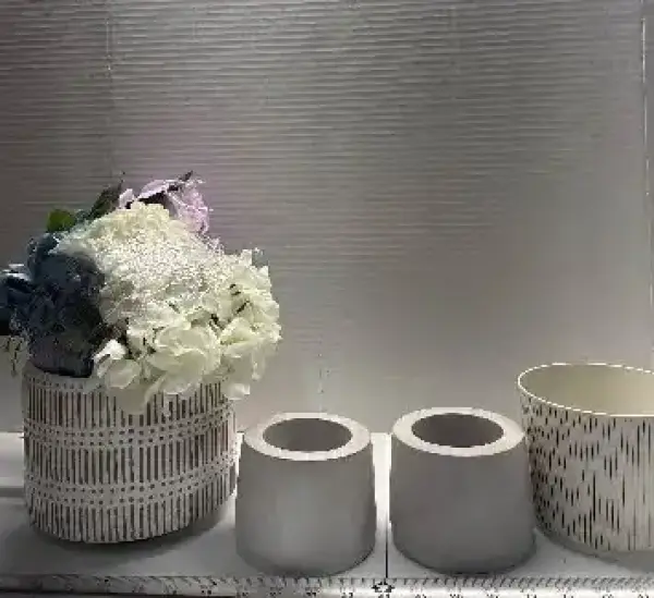 3 clay pots and 1 plastic