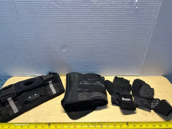 Knee brace, back brace and gloves
