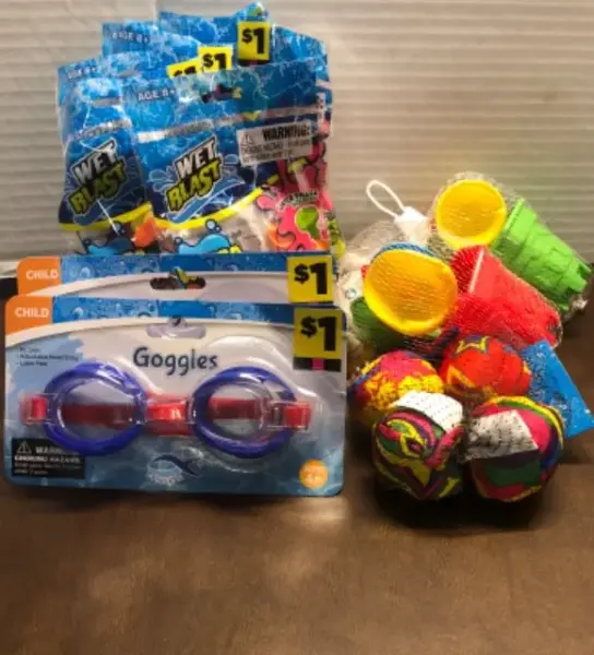 (7) bags water balloons (2) goggles Soft balls for pool Sandbox play set mini's