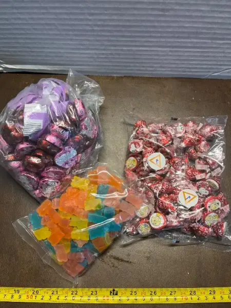 dove heart candies/ hershey kisses/ gummy bears