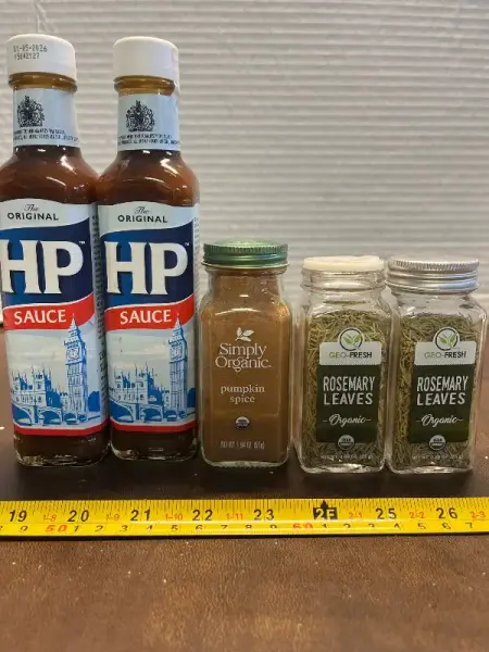 2ct rosemary leaves, 2ct hp sauce, & pumpkin spice mostly in date