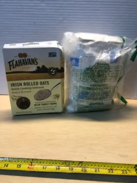 Irish rolled oats exp:08/08/2027, bread flour (opened) exp:11/08/2026